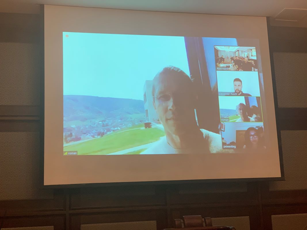 图为远程连线的德国梵沃森酒庄ROMAN庄主等